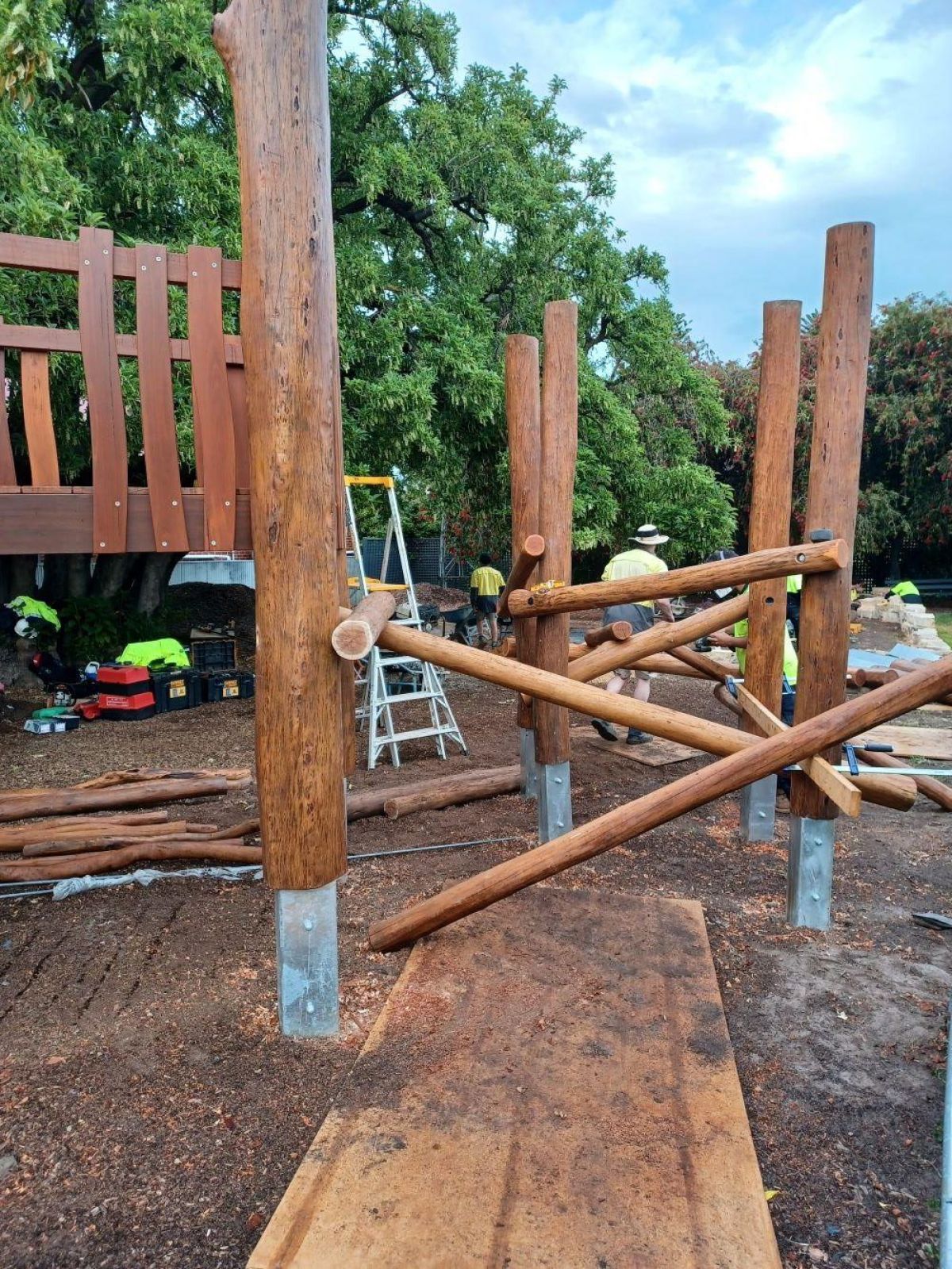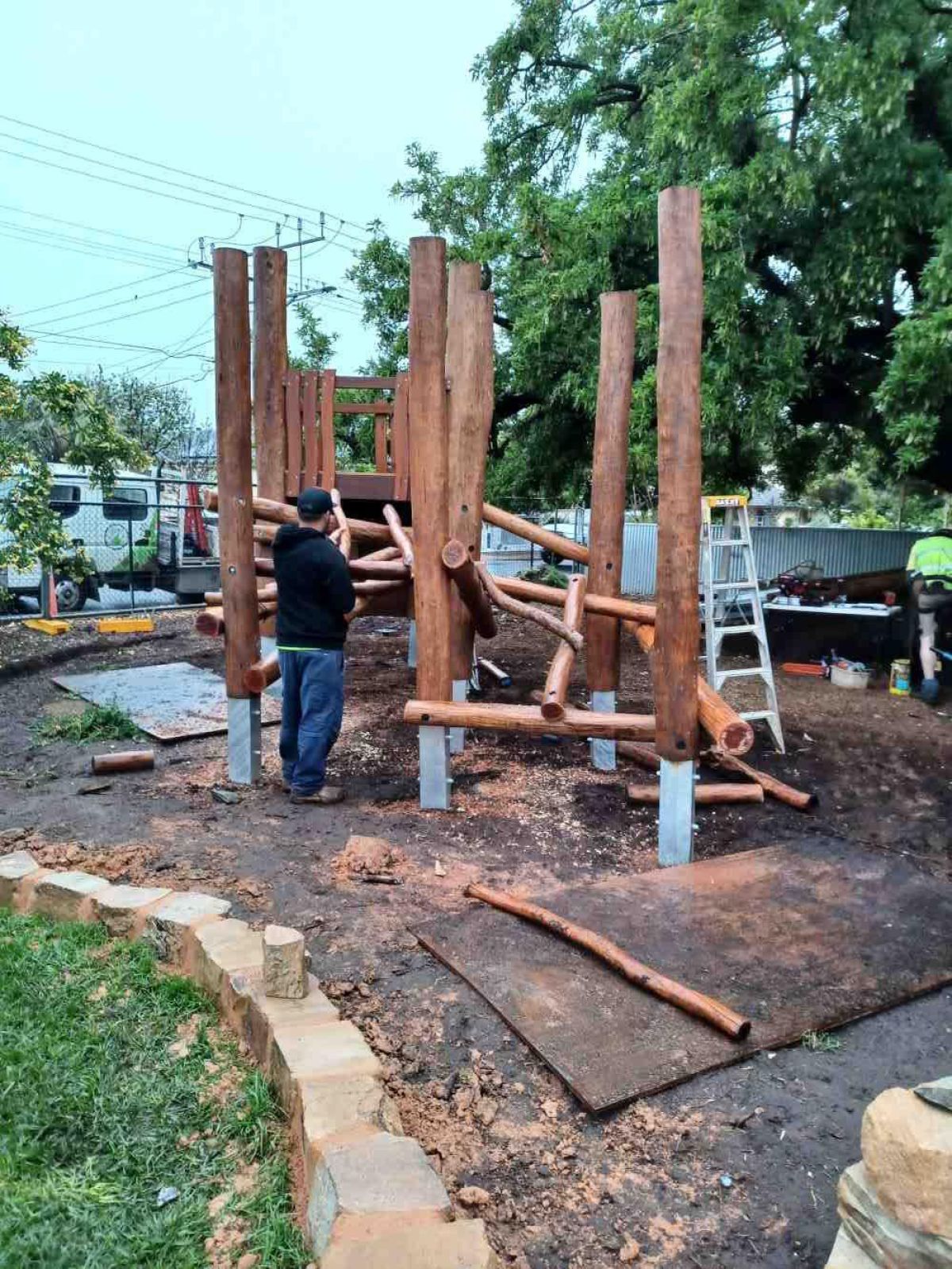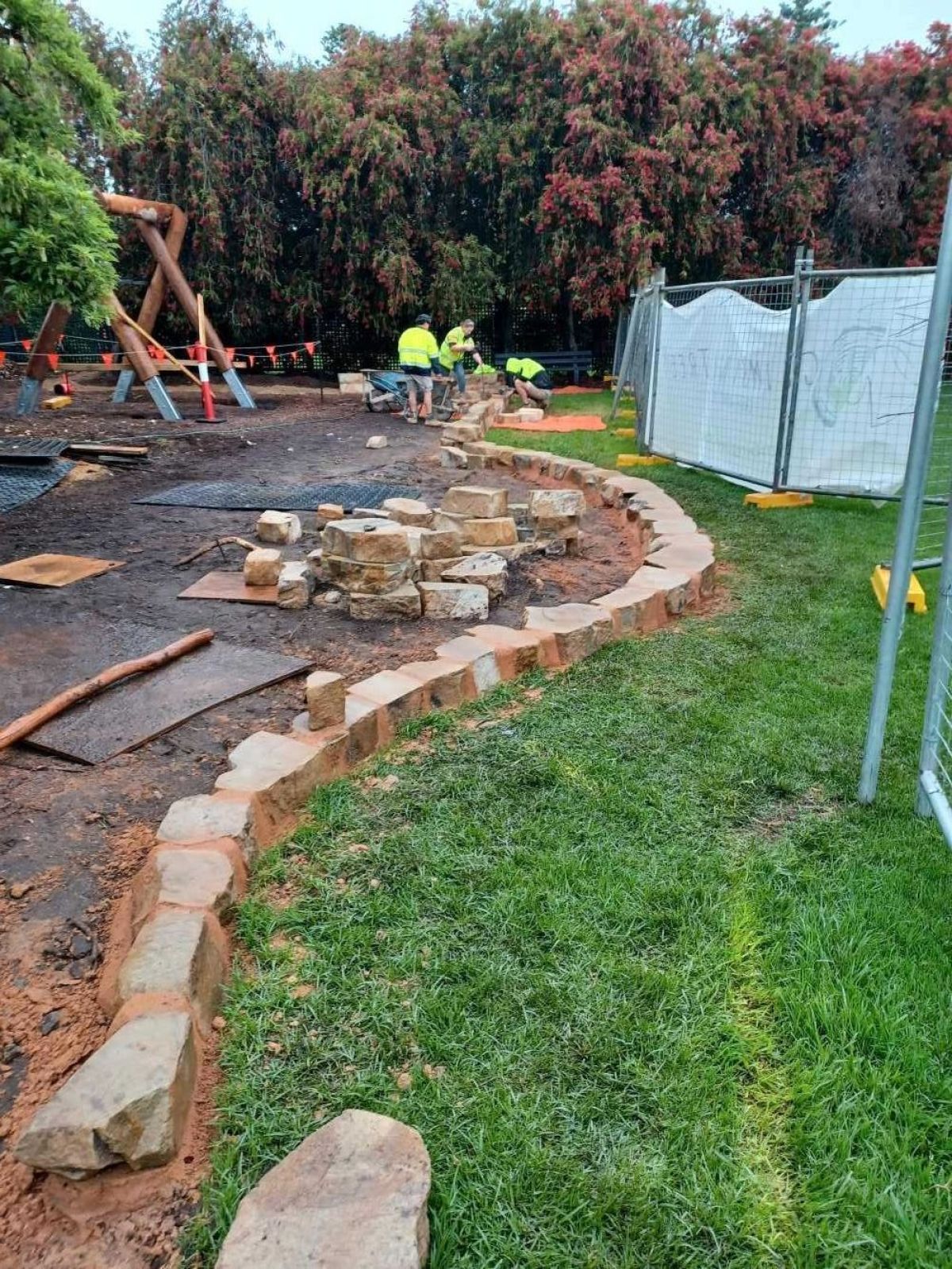 Set for completion in mid-November, recent installations include a log scramble, swing, stone edging and seating nooks as well as the climbing frame under the canopy of the century-year-old Ombu tree.